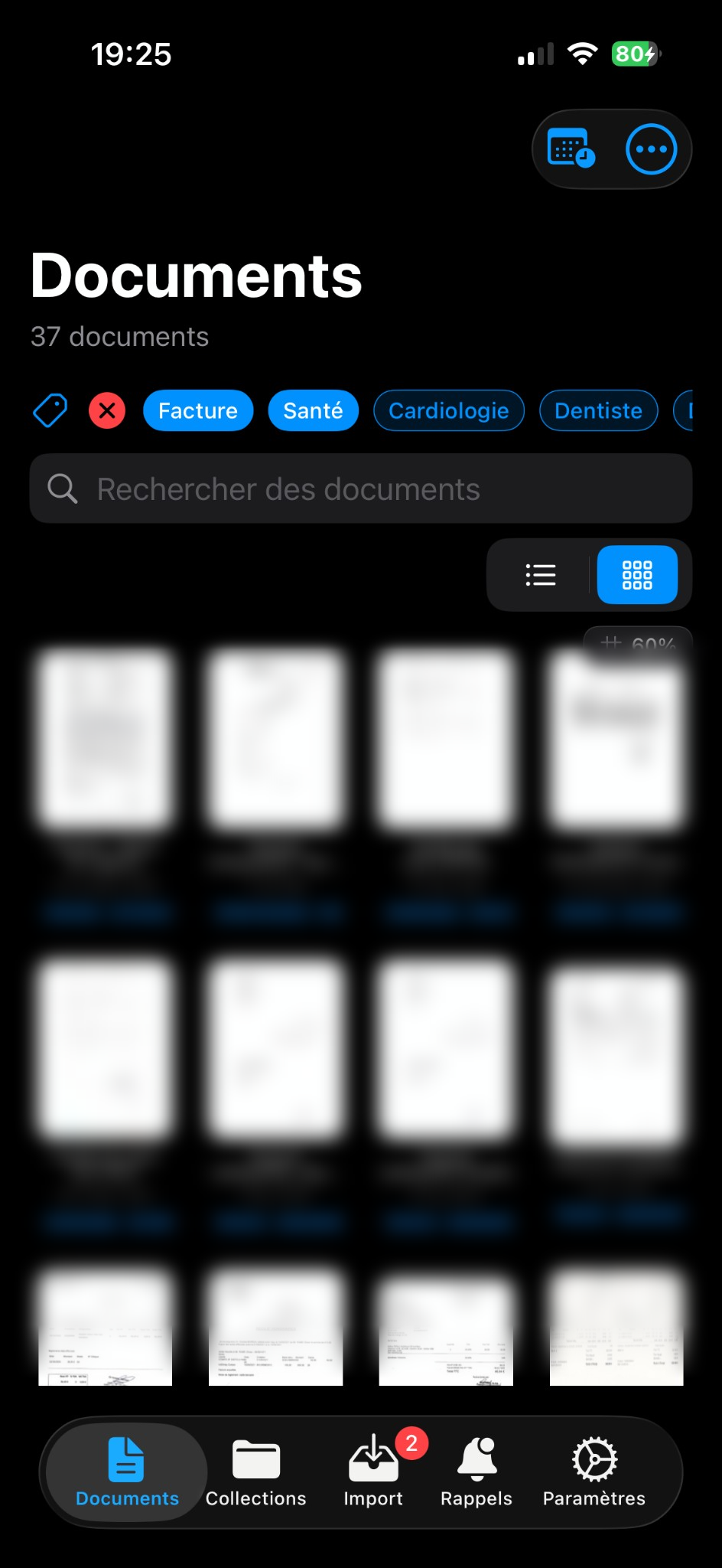 Importez vos PDFs/images ou scannez vos documents, puis laissez HomeDocs les organiser.